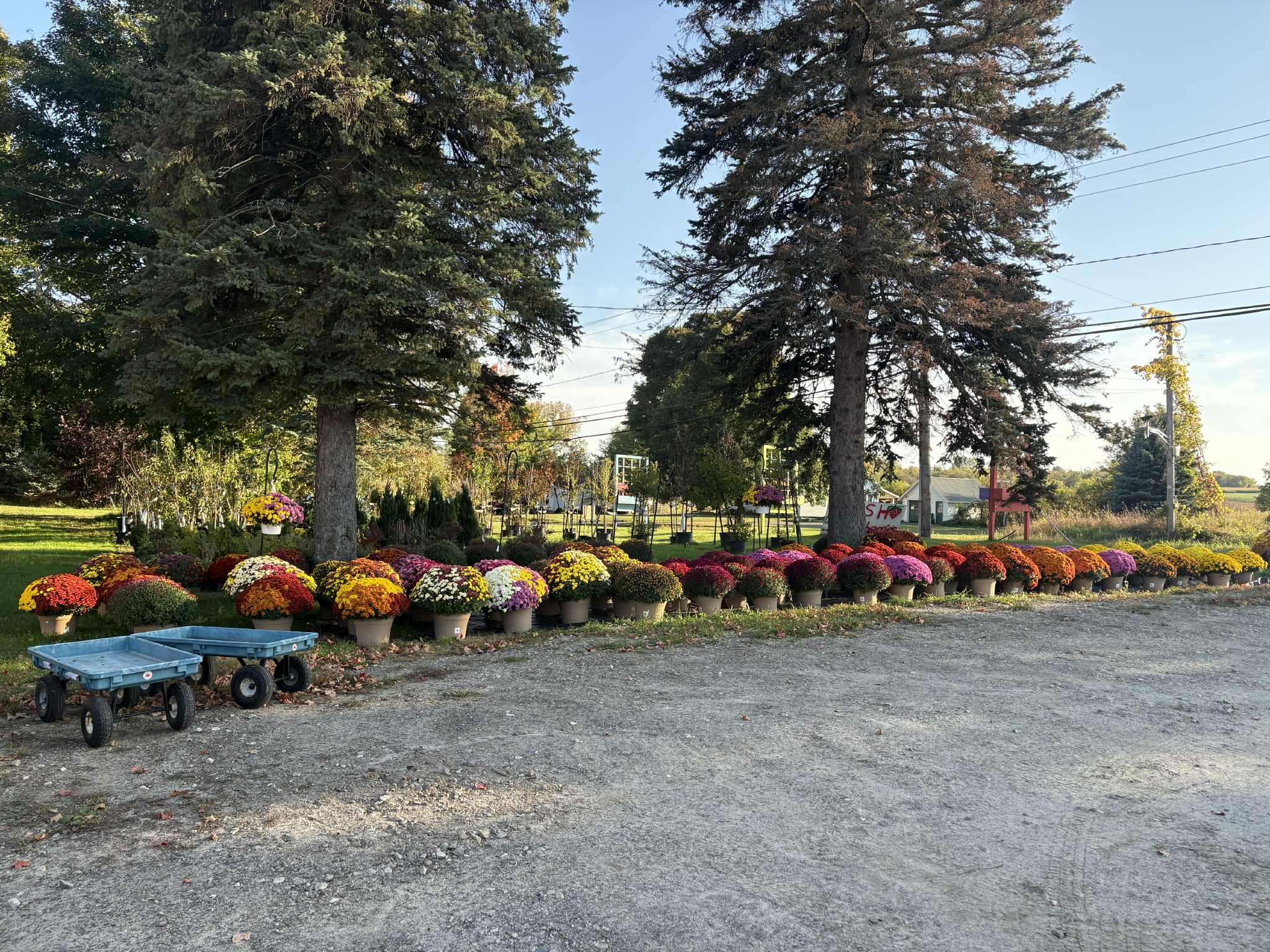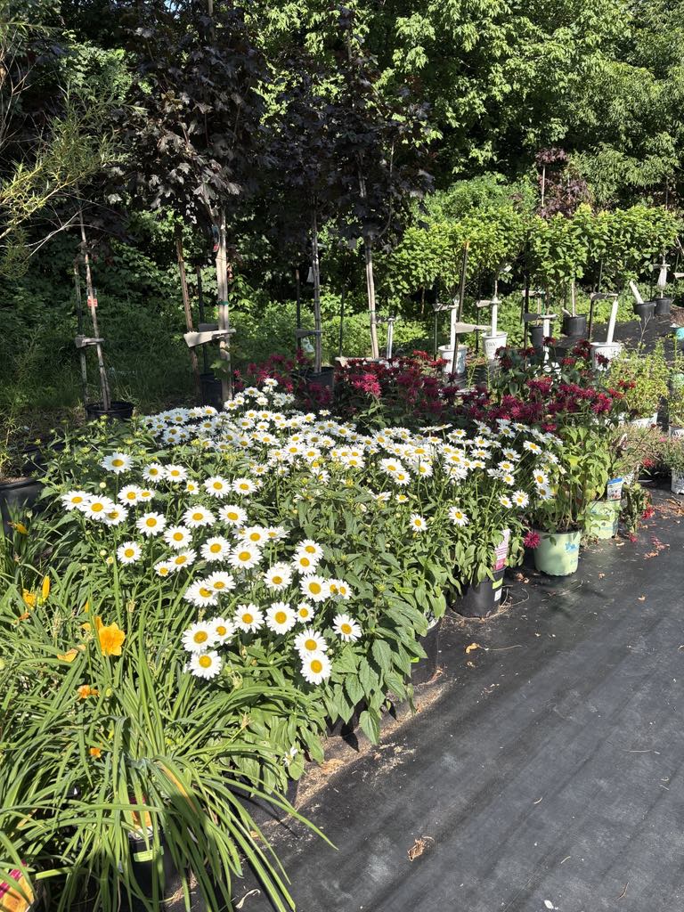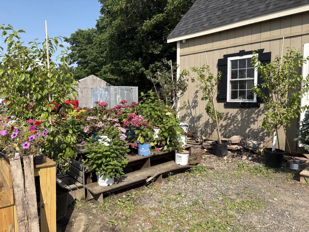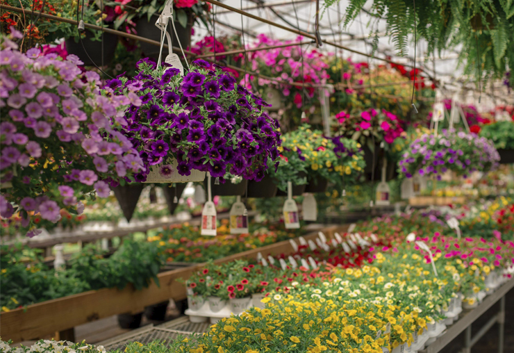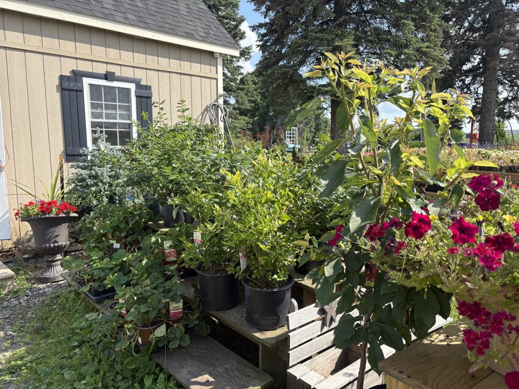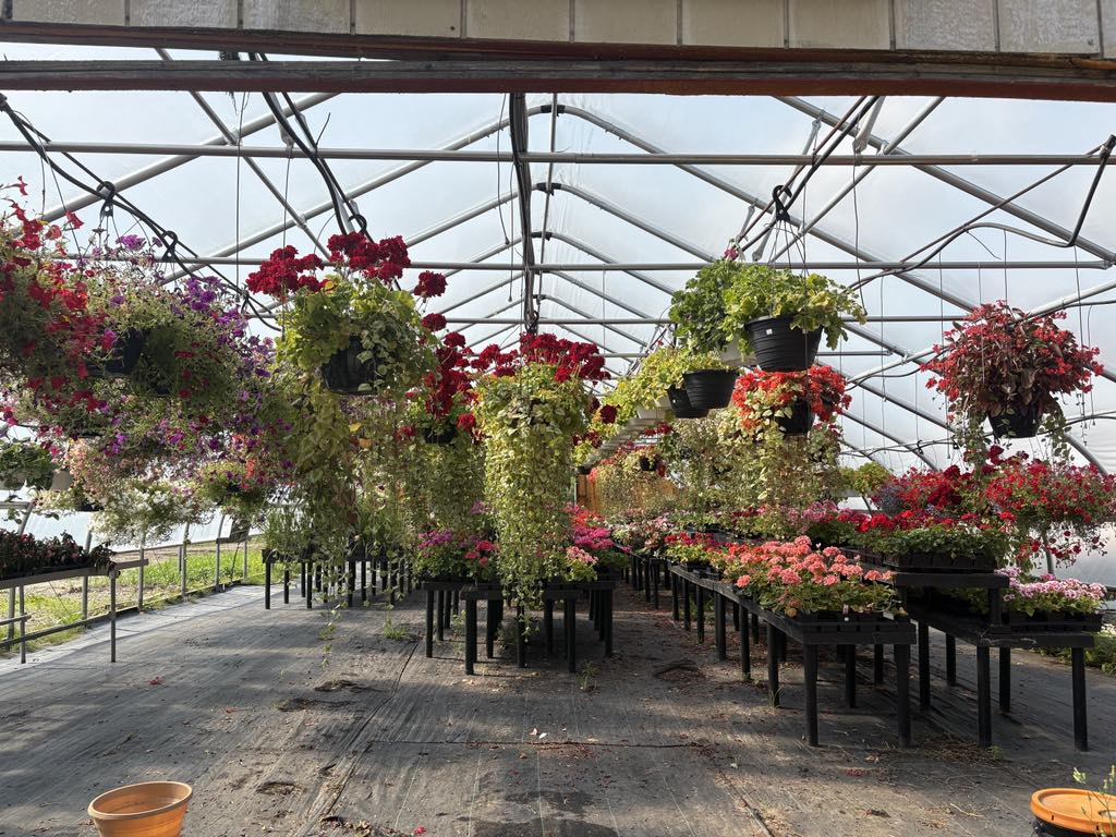 Two Greenhouses full of Baskets, Pots and Flats of Annuals, Perennials and Vegetables.